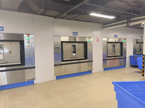 海獅目前為華西天府醫(yī)院配置了洗衣龍、衛(wèi)生隔離式洗滌脫水機、全自動烘干機、四工位展布機、自動熨平機&高速雙面燙平機、四輥熨平機、全自動高速折疊機、堆碼機、烘干龍、純蒸汽發(fā)生器、脈動真空滅菌器、純水制備系統(tǒng)等全套洗消設備。并確保所有設備嚴格按照 WST367-2012《醫(yī)療機構消毒技術規(guī)范》、WS/T508《醫(yī)院醫(yī)用織物洗滌消毒技術規(guī)范》等標準規(guī)范的要求,設立“兩區(qū)三通道”(即潔凈區(qū)、臟污區(qū)、工作人員通道、醫(yī)用織物接收專用通道、醫(yī)用織物發(fā)放專用通道),做到工作流程由污到潔,不交叉、不逆行。并在潔凈區(qū)和污染區(qū)之間設置完全隔離屏障,實施負空氣壓阻斷,使?jié)嵨蹆蓞^(qū)之間實現(xiàn)雙通道的全封閉式實質性隔斷,空氣不對流。