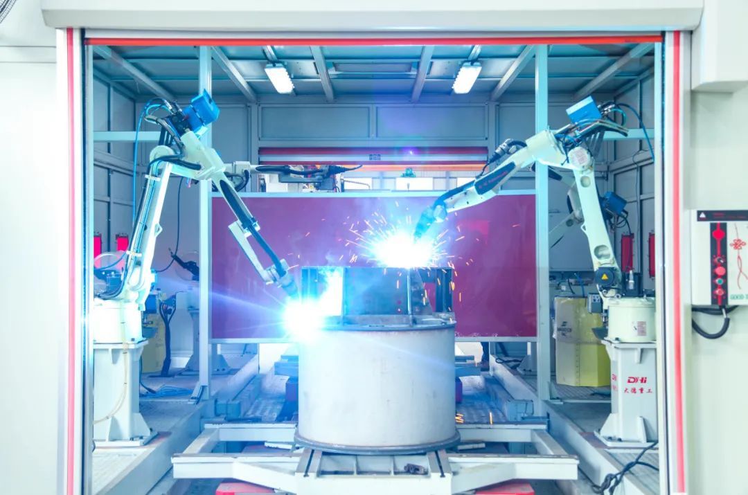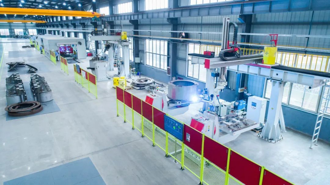 走進(jìn)江蘇海獅機(jī)械股份有限公司的智能焊接機(jī)器人車間,13軸智能焊接機(jī)器人正揮舞“手臂”,精準(zhǔn)“掌控”著洗衣龍外殼組件的焊接工作。