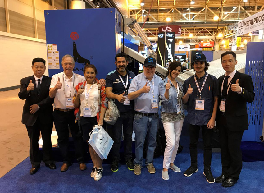 At that day ,Jiangsu Sea-lion Machinery Co.,Ltd general manager Wu shixin and executive deputy general manager Zhang jianfeng led the team ,showed XGQ-100CFQ automatic washer extractor、ZD3300-VB high speed flatwork folder、ZBQ3300III three station feeder .